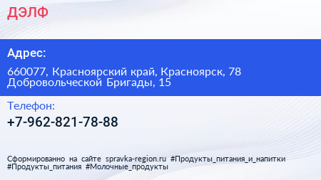 ДЭЛФ по адресу 660077, Красноярский край, Красноярск, 78 Добровольческой Бригады, 15 в дальнейшем Организация, размещена в следующих категориях:
