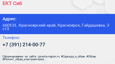 ЕКТ-Сиб по адресу 660131, Красноярский край, Красноярск, Гайдашовка, 3 ст3 в дальнейшем Организация, размещена в следующих категориях: