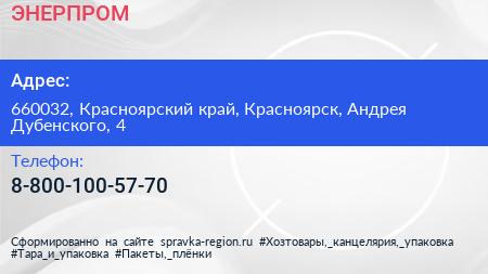 ЭНЕРПРОМ по адресу 660032, Красноярский край, Красноярск, Андрея Дубенского, 4 в дальнейшем Организация, размещена в следующих категориях: