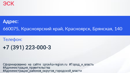 ЭСК по адресу 660075, Красноярский край, Красноярск, Брянская, 140 в дальнейшем Организация, размещена в следующих категориях: