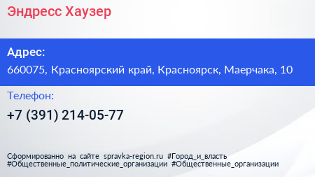 Эндресс+Хаузер по адресу 660075, Красноярский край, Красноярск, Маерчака, 10 в дальнейшем Организация, размещена в следующих категориях: