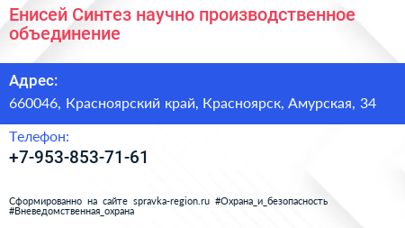 Енисей-Синтез, научно-производственное объединение по адресу 660046, Красноярский край, Красноярск, Амурская, 34 в дальнейшем Организация, размещена в следующих категориях:
