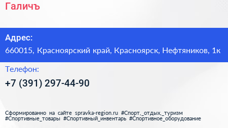 Галичъ по адресу 660015, Красноярский край, Красноярск, Нефтяников, 1к в дальнейшем Организация, размещена в следующих категориях: