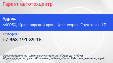 Гарант, автотехцентр по адресу 660050, Красноярский край, Красноярск, Грунтовая, 17 в дальнейшем Организация, размещена в следующих категориях: