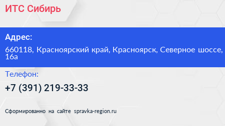ИТС-Сибирь по адресу 660118, Красноярский край, Красноярск, Северное шоссе, 16а в дальнейшем Организация, размещена в следующих категориях: