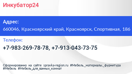 Инкубатор24 по адресу 660046, Красноярский край, Красноярск, Спортивная, 186 в дальнейшем Организация, размещена в следующих категориях: