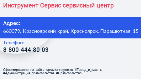 Инструмент Сервис, сервисный центр по адресу 660079, Красноярский край, Красноярск, Парашютная, 15 в дальнейшем Организация, размещена в следующих категориях: