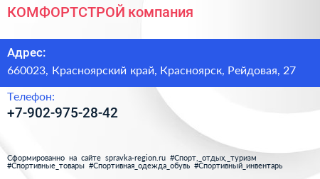 КОМФОРТСТРОЙ, компания по адресу 660023, Красноярский край, Красноярск, Рейдовая, 27 в дальнейшем Организация, размещена в следующих категориях: