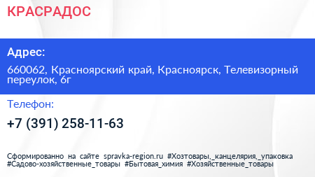 КРАСРАДОС по адресу 660062, Красноярский край, Красноярск, Телевизорный переулок, 6г в дальнейшем Организация, размещена в следующих категориях: