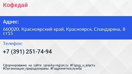 Кофедай по адресу 660020, Красноярский край, Красноярск, Спандаряна, 8 ст15 в дальнейшем Организация, размещена в следующих категориях:
