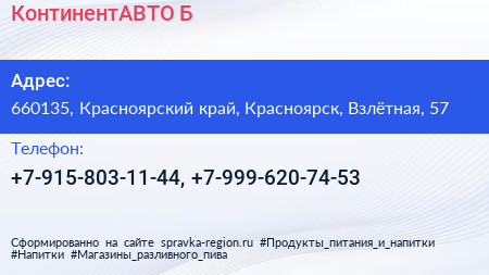 КонтинентАВТО-Б по адресу 660135, Красноярский край, Красноярск, Взлётная, 57 в дальнейшем Организация, размещена в следующих категориях: