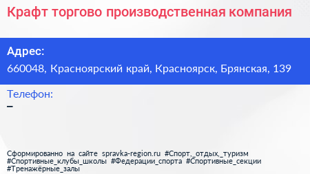Крафт, торгово-производственная компания по адресу 660048, Красноярский край, Красноярск, Брянская, 139 в дальнейшем Организация, размещена в следующих категориях:
