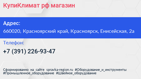 КупиКлимат.рф, магазин по адресу 660020, Красноярский край, Красноярск, Енисейская, 2а в дальнейшем Организация, размещена в следующих категориях: