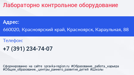 Лабораторно-контрольное оборудование по адресу 660020, Красноярский край, Красноярск, Караульная, 88 в дальнейшем Организация, размещена в следующих категориях: