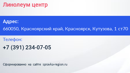 Линолеум центр по адресу 660050, Красноярский край, Красноярск, Кутузова, 1 ст70 в дальнейшем Организация, размещена в следующих категориях: