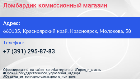 Ломбардик, комиссионный магазин по адресу 660135, Красноярский край, Красноярск, Молокова, 58 в дальнейшем Организация, размещена в следующих категориях: