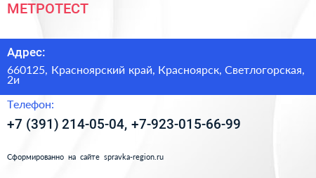 МЕТРОТЕСТ по адресу 660125, Красноярский край, Красноярск, Светлогорская, 2и в дальнейшем Организация, размещена в следующих категориях: