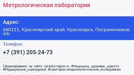 Метрологическая лаборатория по адресу 660111, Красноярский край, Красноярск, Пограничников, 44г в дальнейшем Организация, размещена в следующих категориях: