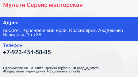 Мульти Сервис, мастерская по адресу 660064, Красноярский край, Красноярск, Академика Вавилова, 1 ст39 в дальнейшем Организация, размещена в следующих категориях: