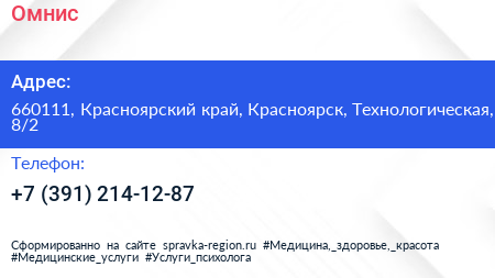 Омнис по адресу 660111, Красноярский край, Красноярск, Технологическая, 8/2 в дальнейшем Организация, размещена в следующих категориях: