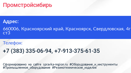 Промстройсибирь по адресу 660006, Красноярский край, Красноярск, Свердловская, 4г ст3 в дальнейшем Организация, размещена в следующих категориях: