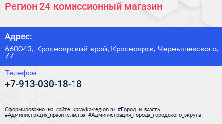 Регион 24, комиссионный магазин по адресу 660043, Красноярский край, Красноярск, Чернышевского, 77 в дальнейшем Организация, размещена в следующих категориях:
