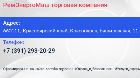 РемЭнергоМаш, торговая компания по адресу 660111, Красноярский край, Красноярск, Башиловская, 11 в дальнейшем Организация, размещена в следующих категориях: