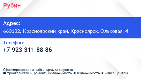 Рубин по адресу 660132, Красноярский край, Красноярск, Ольховая, 4 в дальнейшем Организация, размещена в следующих категориях: