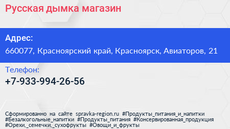 Русская дымка, магазин по адресу 660077, Красноярский край, Красноярск, Авиаторов, 21 в дальнейшем Организация, размещена в следующих категориях: