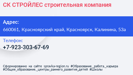 СК-СТРОЙЛЕС, строительная компания по адресу 660061, Красноярский край, Красноярск, Калинина, 53а в дальнейшем Организация, размещена в следующих категориях: