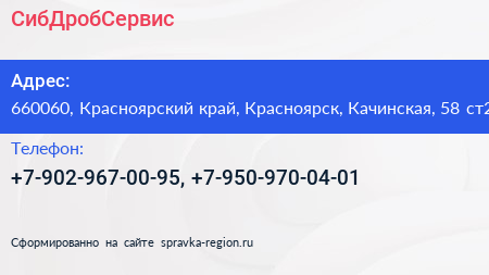 СибДробСервис по адресу 660060, Красноярский край, Красноярск, Качинская, 58 ст2 в дальнейшем Организация, размещена в следующих категориях: