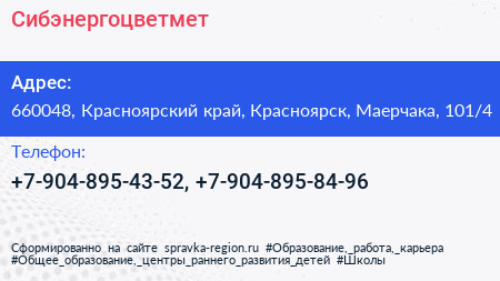 Сибэнергоцветмет по адресу 660048, Красноярский край, Красноярск, Маерчака, 101/4 в дальнейшем Организация, размещена в следующих категориях: