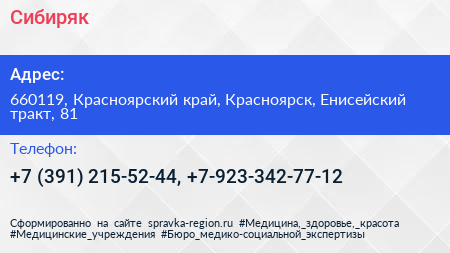 Сибиряк по адресу 660119, Красноярский край, Красноярск, Енисейский тракт, 81 в дальнейшем Организация, размещена в следующих категориях: