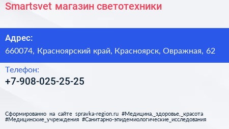 Smartsvet, магазин светотехники по адресу 660074, Красноярский край, Красноярск, Овражная, 62 в дальнейшем Организация, размещена в следующих категориях: