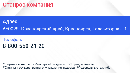 Станрос, компания по адресу 660028, Красноярский край, Красноярск, Телевизорная, 1 в дальнейшем Организация, размещена в следующих категориях: