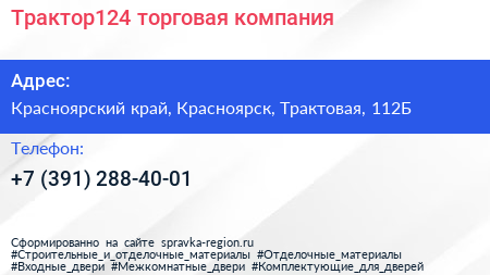 Трактор124, торговая компания по адресу Красноярский край, Красноярск, Трактовая, 112Б в дальнейшем Организация, размещена в следующих категориях: