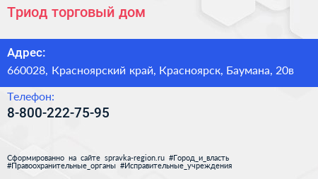 Триод, торговый дом по адресу 660028, Красноярский край, Красноярск, Баумана, 20в в дальнейшем Организация, размещена в следующих категориях: