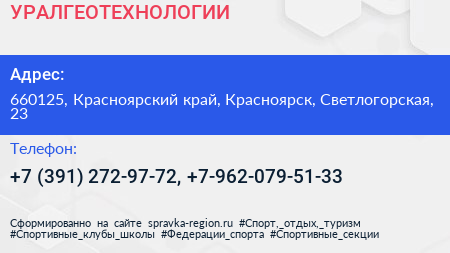 УРАЛГЕОТЕХНОЛОГИИ по адресу 660125, Красноярский край, Красноярск, Светлогорская, 23 в дальнейшем Организация, размещена в следующих категориях: