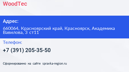WoodTec по адресу 660064, Красноярский край, Красноярск, Академика Вавилова, 3 ст11 в дальнейшем Организация, размещена в следующих категориях: