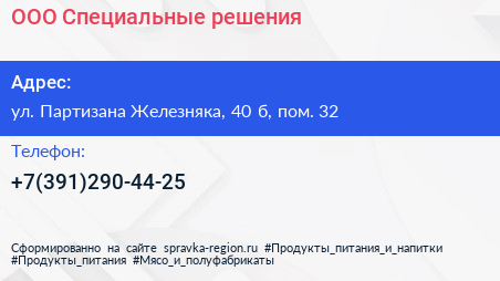 ООО «Специальные решения» по адресу ул. Партизана Железняка, 40 б, пом. 32 в дальнейшем Организация, размещена в следующих категориях:
