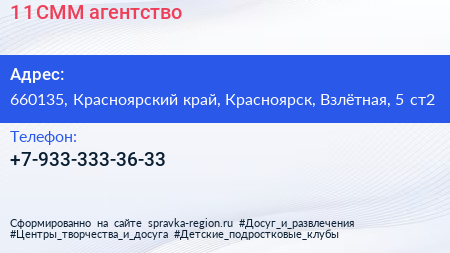 1+1, СММ-агентство по адресу 660135, Красноярский край, Красноярск, Взлётная, 5 ст2 в дальнейшем Организация, размещена в следующих категориях: