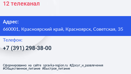 12, телеканал по адресу 660001, Красноярский край, Красноярск, Советская, 35 в дальнейшем Организация, размещена в следующих категориях: