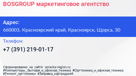 BOSGROUP, маркетинговое агентство по адресу 660003, Красноярский край, Красноярск, Щорса, 30 в дальнейшем Организация, размещена в следующих категориях: