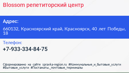 Blossom, репетиторский центр по адресу 660132, Красноярский край, Красноярск, 40 лет Победы, 18 в дальнейшем Организация, размещена в следующих категориях: