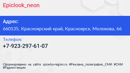 Epiclook_neon по адресу 660135, Красноярский край, Красноярск, Молокова, 66 в дальнейшем Организация, размещена в следующих категориях: