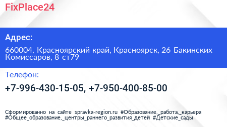FixPlace24 по адресу 660004, Красноярский край, Красноярск, 26 Бакинских Комиссаров, 8 ст79 в дальнейшем Организация, размещена в следующих категориях: