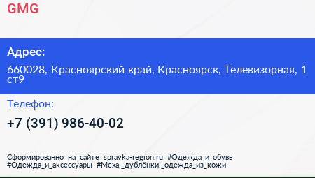 GMG по адресу 660028, Красноярский край, Красноярск, Телевизорная, 1 ст9 в дальнейшем Организация, размещена в следующих категориях: