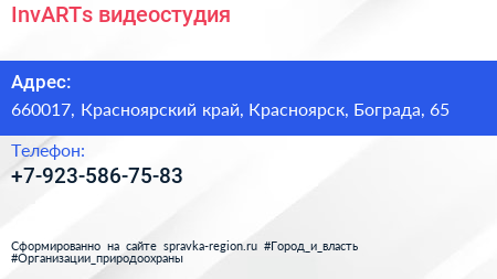 InvARTs, видеостудия по адресу 660017, Красноярский край, Красноярск, Бограда, 65 в дальнейшем Организация, размещена в следующих категориях: