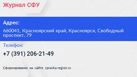 Журнал, СФУ по адресу 660041, Красноярский край, Красноярск, Свободный проспект, 79 в дальнейшем Организация, размещена в следующих категориях: