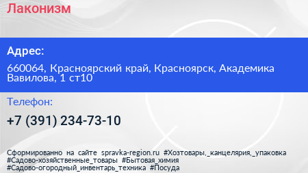 Лаконизм по адресу 660064, Красноярский край, Красноярск, Академика Вавилова, 1 ст10 в дальнейшем Организация, размещена в следующих категориях: